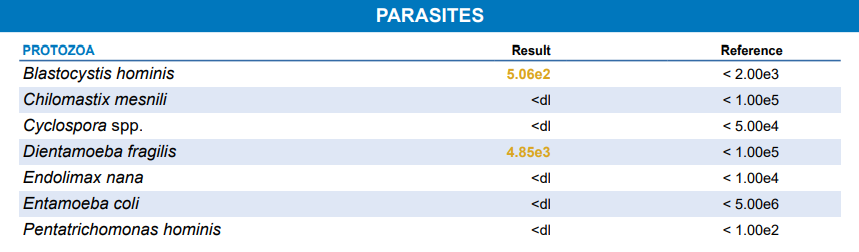 Protozoa – Single-celled organisms that are microscopic (e.g., Giardia, Blastocystis hominis, Cryptosporidium, Dientamoeba fragilis, Entamoeba histolytica, etc)